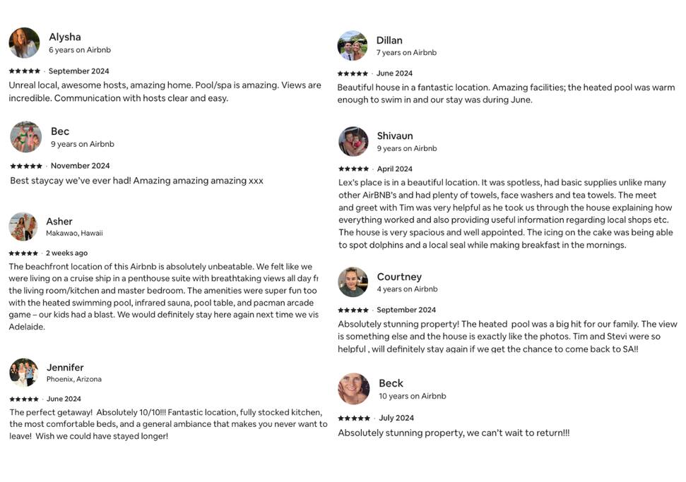 Luxurious beachfront escape — unwind in your own private pool, spa & sauna just steps from the ocean. Watch sunsets, hear the waves, and stroll into Henley Square for cafés, restaurants and coastal vibes. ☀️🏖️ - 2 Storey Beachfront Opulence - Heated Pool/Spa - Infrared Sauna - Billiard Table & Pac-man Game Machine - Fast Wifi - Opulent Feel With 3.5m Ceilings! - 5 Minute Walk To Henley Square/All Cafe's & Restaurants - 5-10 Minutes To Airport | 15 Minutes To City